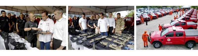 O Governo do Estado destinou ao Corpo de Bombeiros Militar 25 viaturas, que vão atender 17 batalhões da capital e do interior. Além disso, foram entregues 701 equipamentos de mergulho e salvamento, distribuídos para oito municípios, ampliando a capacidade de resposta em ocorrências aquáticas e operações especiais.